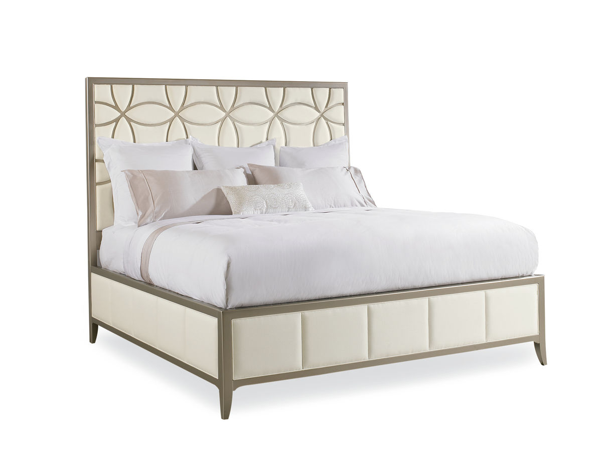 Мягкая обивка изголовья с фирменным орнаментом Caracole добавляет кровати Sleeping Beauty очарования и уюта. Легкое сияние фактурной ткани в комбинации с матовой отделкой превращает объемный узор в элегантный четырехлистник.